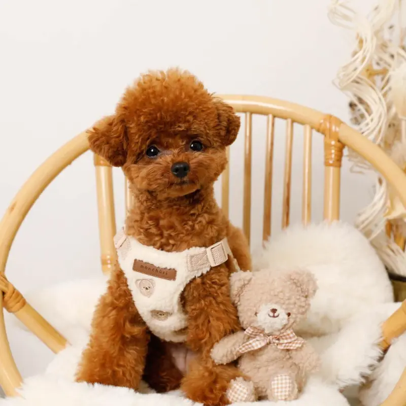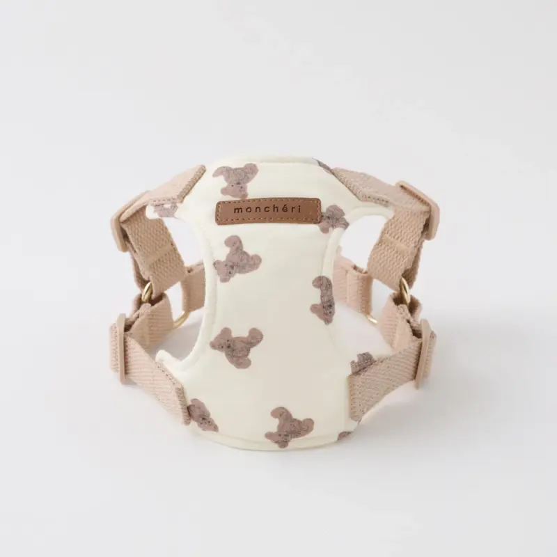 くまさん刺繍ボアハーネス+リードSET【名入れ刺繍対応】