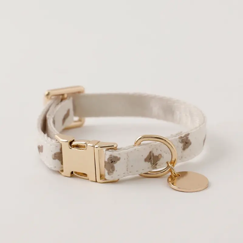 くまさんプリントバックルカラー+リードSET【名入れ彫刻対応】