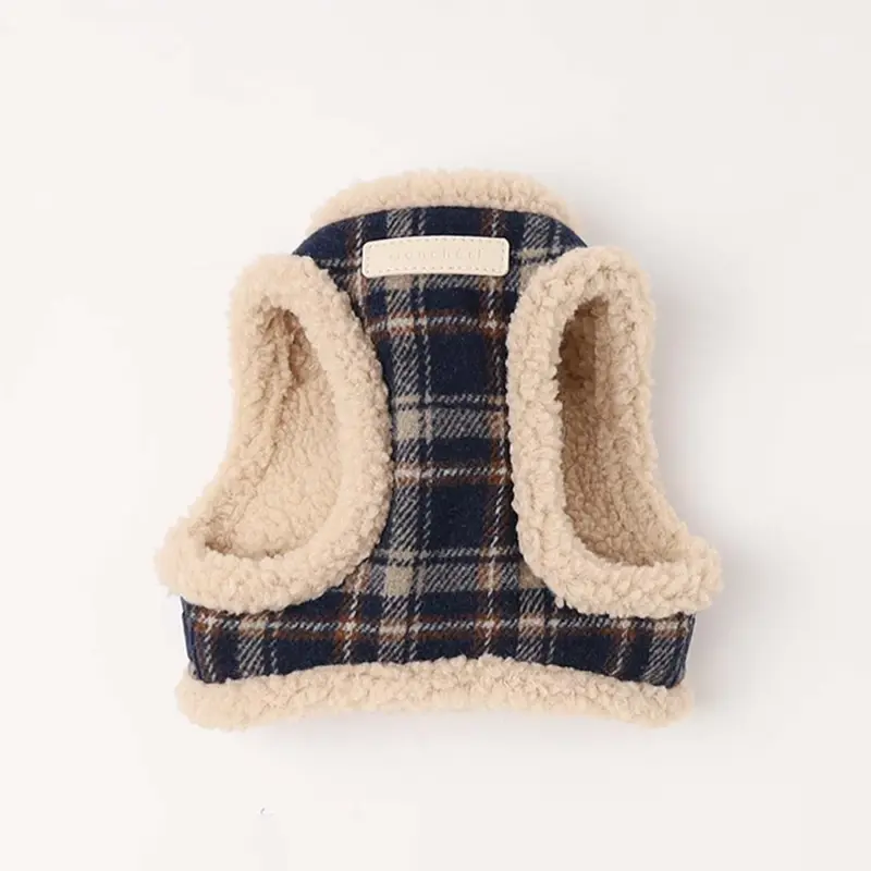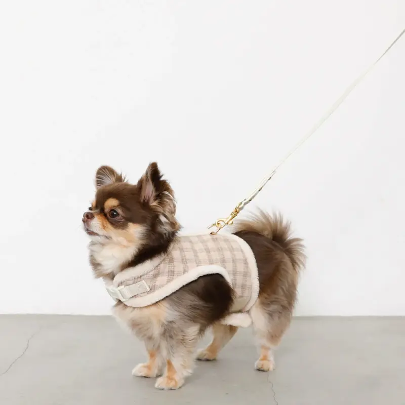 ツイードチェックファーハーネス+リードSET【名入れ刺繍対応】