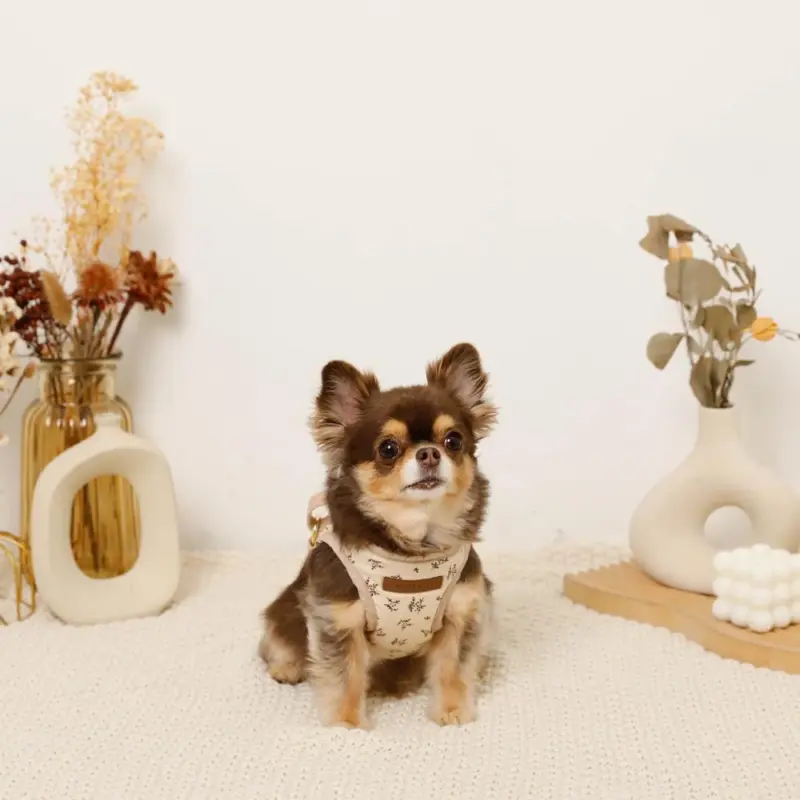 ナチュラルフラワーハーネス+リードSET【名入れ刺繍対応】