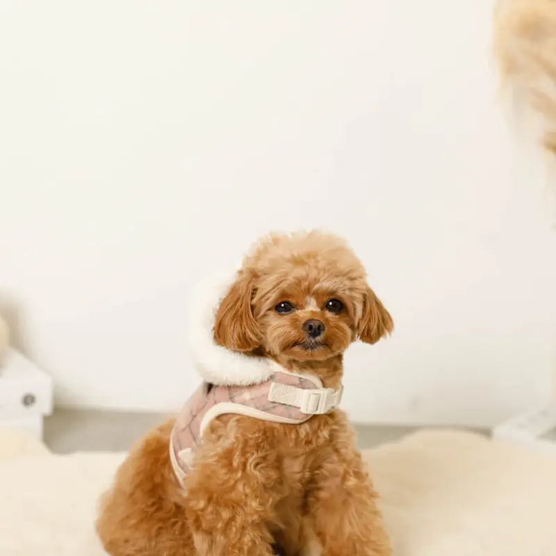 ファーフード付チェックハーネス+リードSET【名入れ刺繍対応】