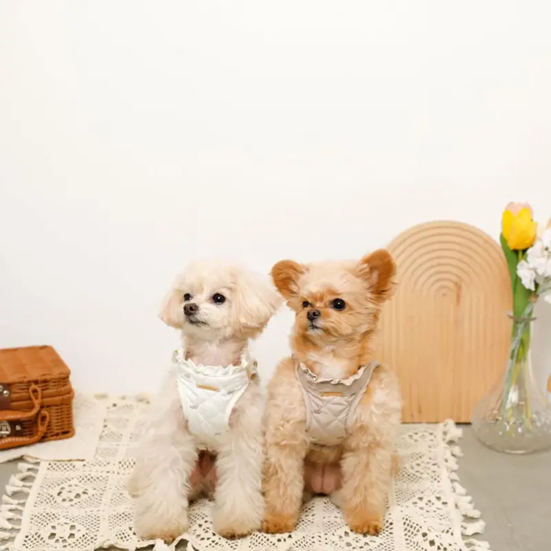 リボン刺繍フリルキルティングハーネス+リードSET【名入れ刺繍対応】