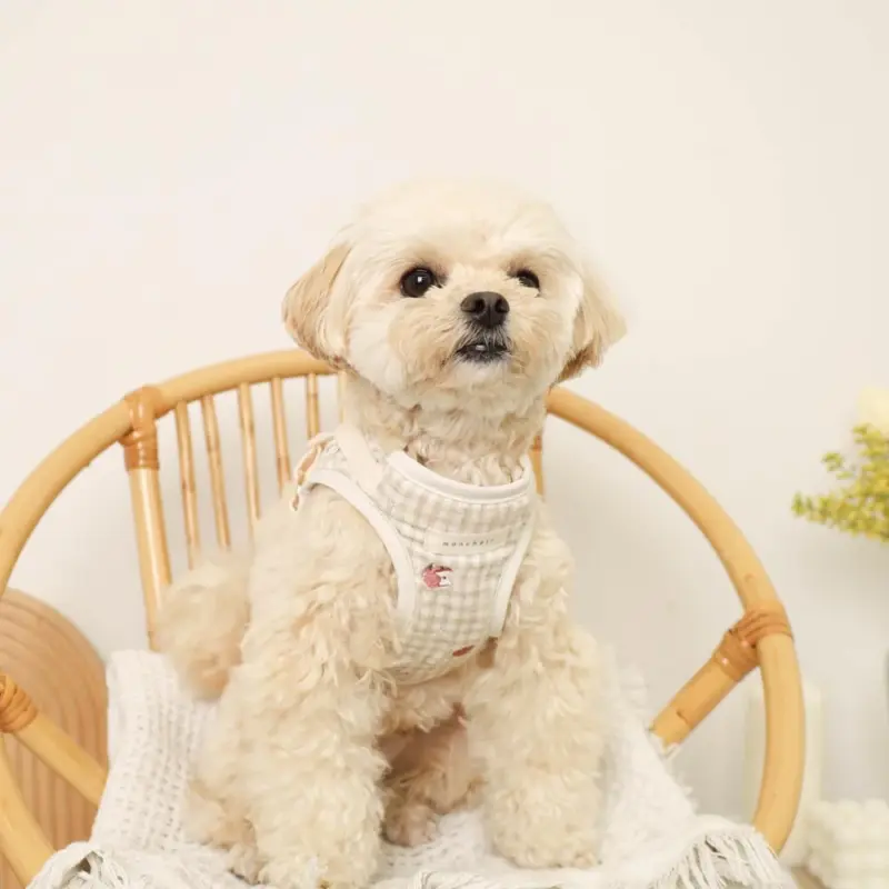 リンゴ柄刺繍ハーネス+リードSET【名入れ刺繍対応】