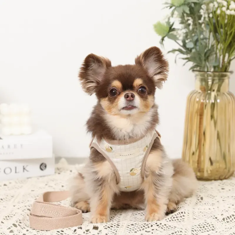 レモン柄刺繍ハーネス+リードSET【名入れ刺繍対応】