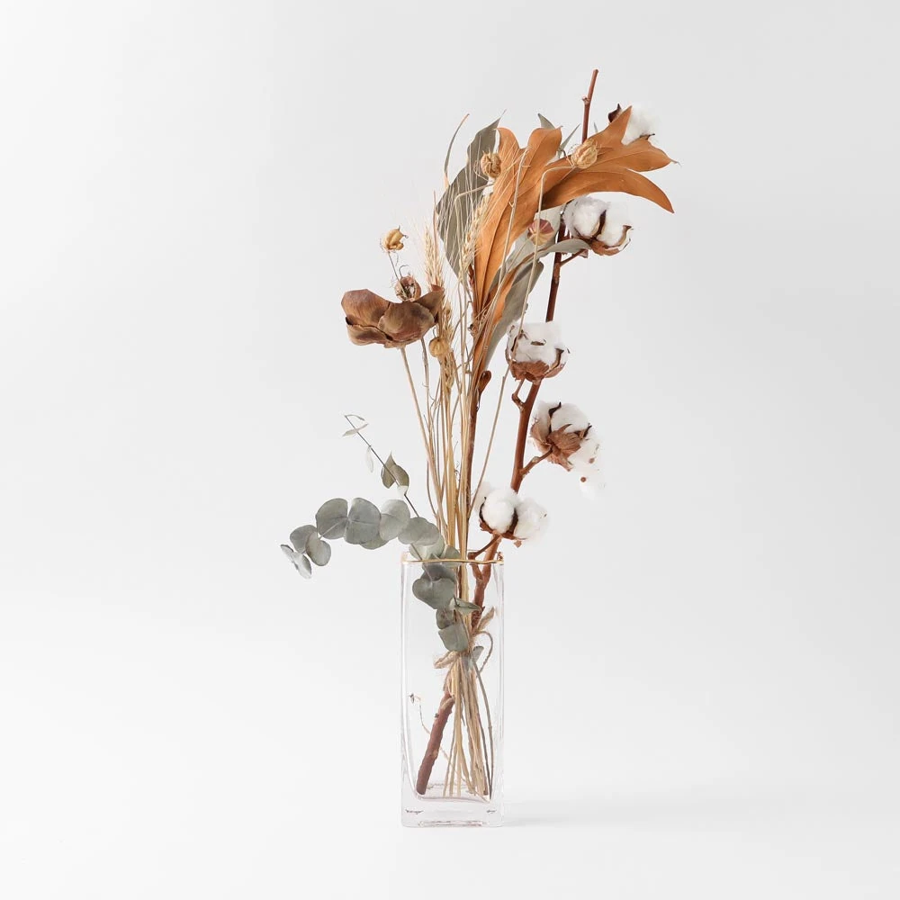このガラスフラワーベースは、単に花を生ける容器としてだけでなく、空間全体の雰囲気を変える力を持っています。透明感のあるガラスとゴールドの輝きが織りなす光の演出は、お花の美しさをより一層引き立てます。また、安定感のあるベースデザインにより、大きな花束もしっかりと支えることが可能です。