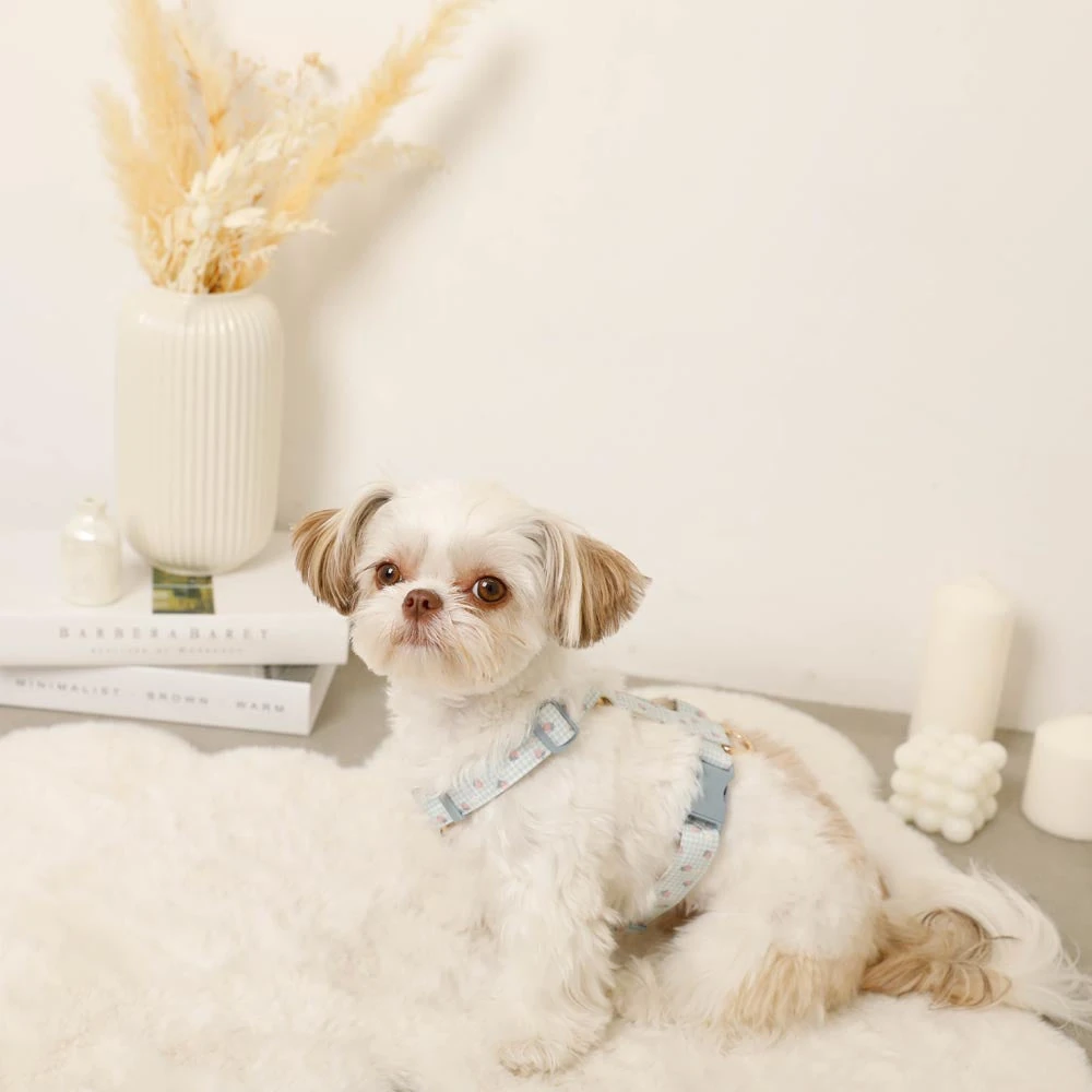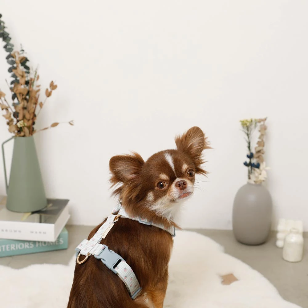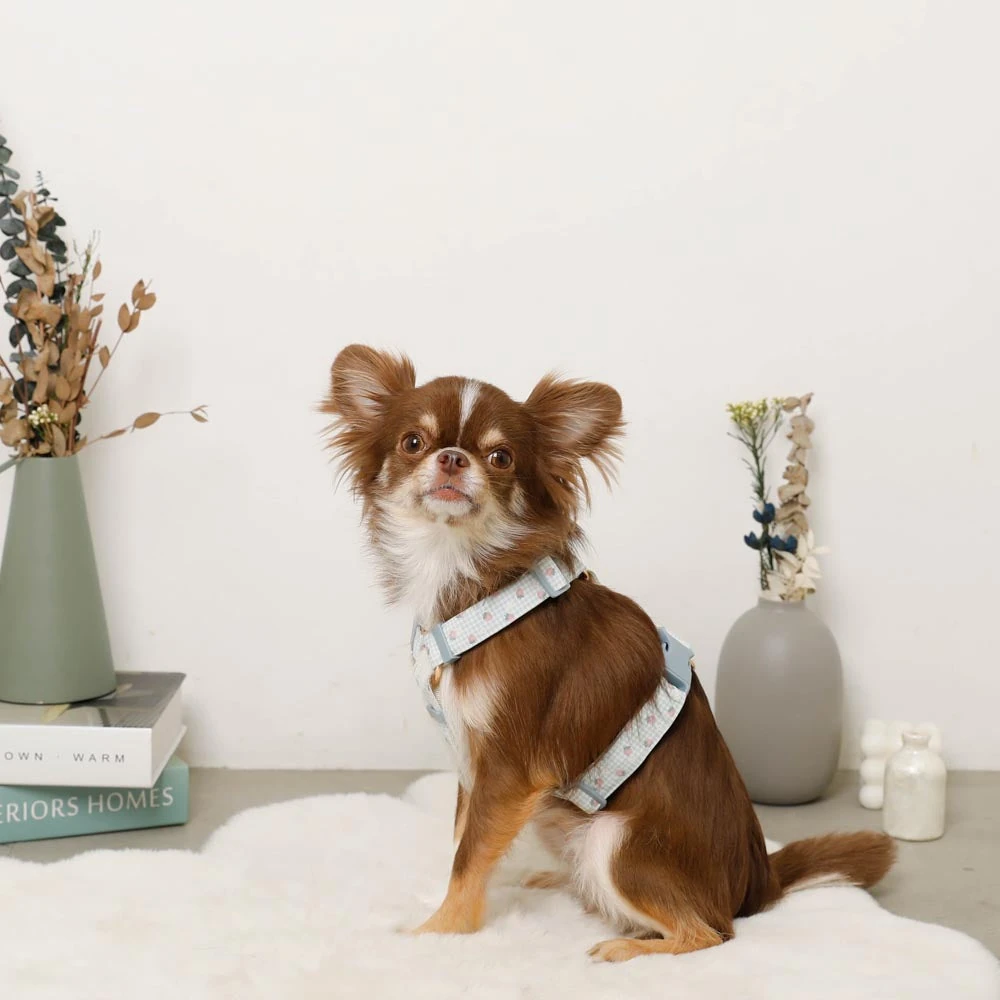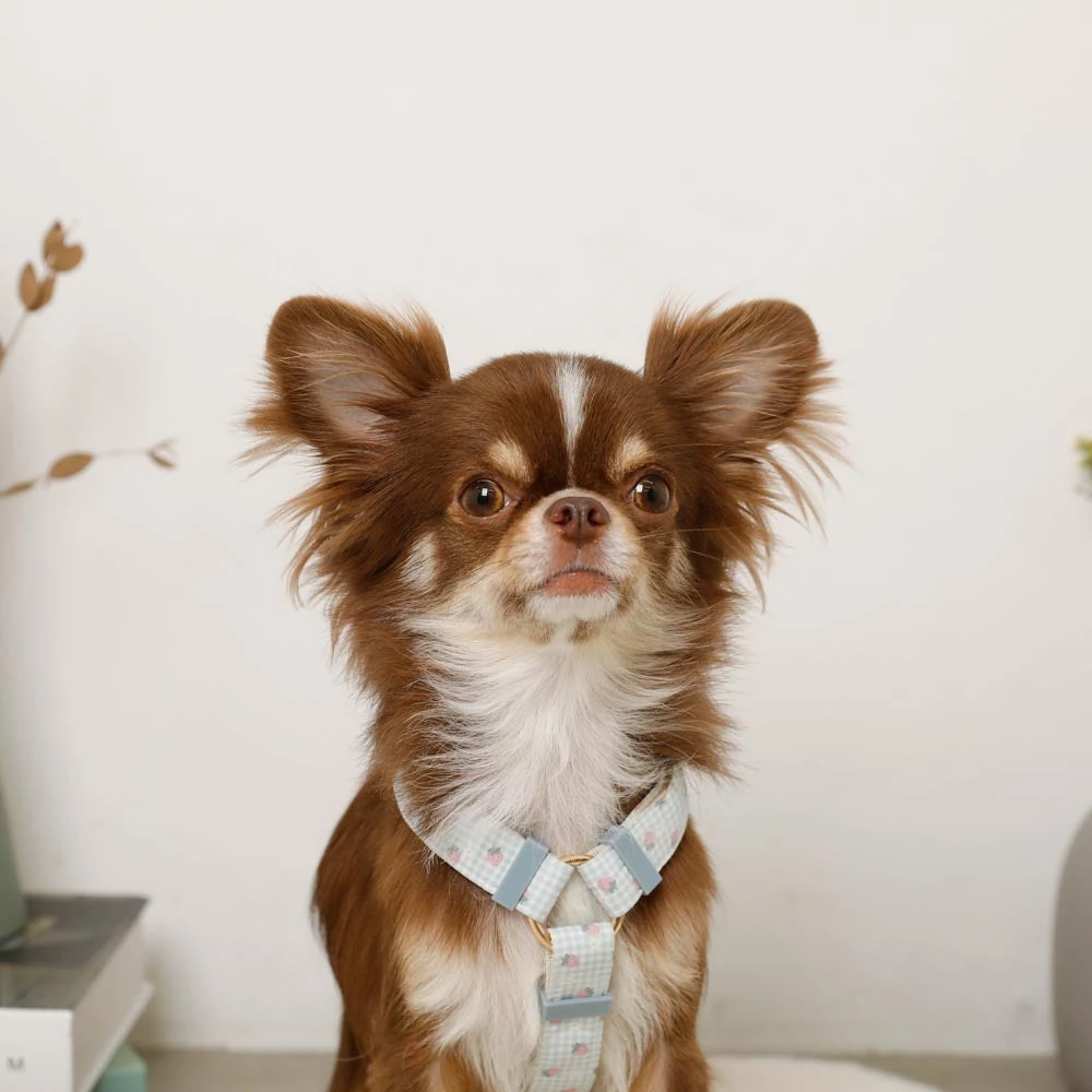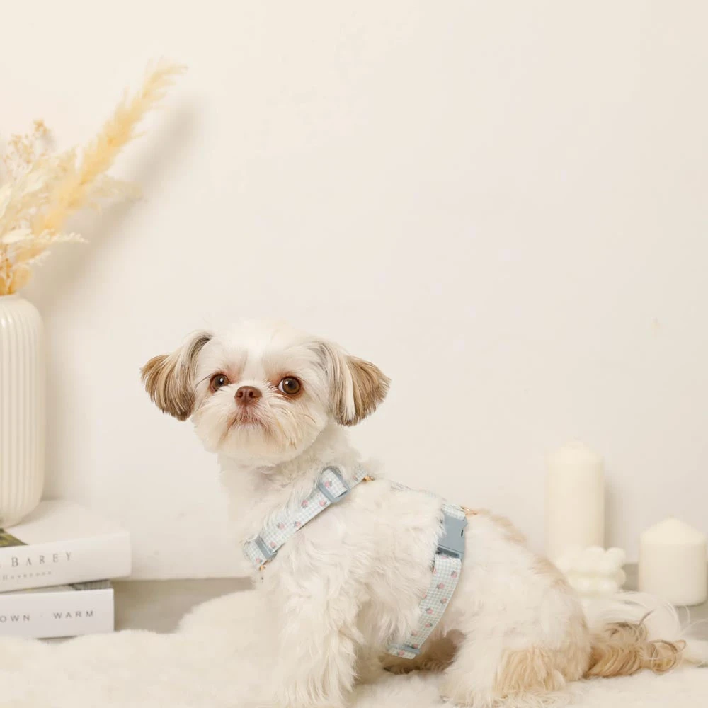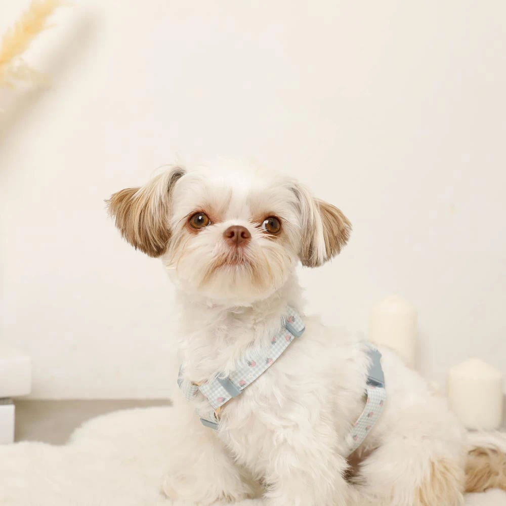 クラシックなギンガムチェックとかわいらしいいちごモチーフの絶妙なバランス。このハーネスは、単なるペット用品ではなく、愛犬の魅力を引き立たせるファッションアイテムとして設計されています。