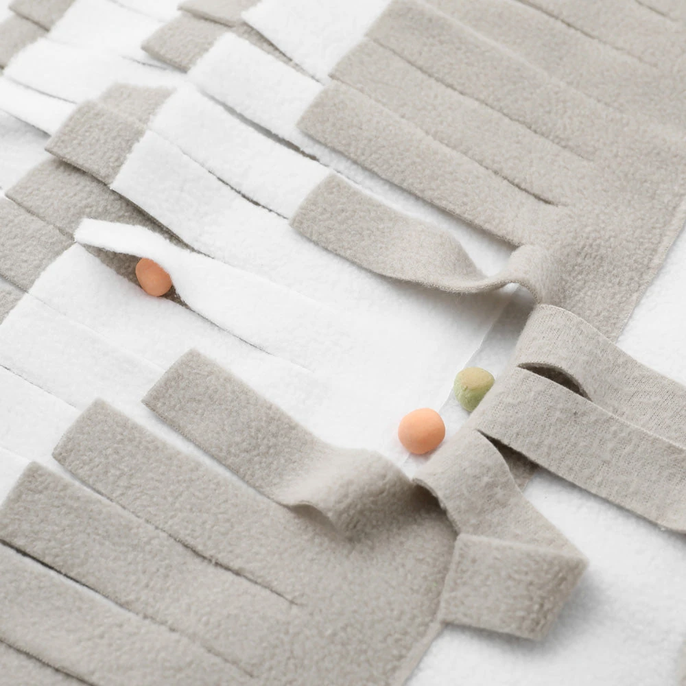 当マットは犬の行動学と認知科学の研究に基づいて開発されました。バイカラー(二色)デザインは視覚的な魅力だけでなく、異なる色の領域が犬の探索意欲を高める効果があります。高密度のポリエステル素材を使用し、洗濯機での洗濯が可能なため、衛生面でも優れています。