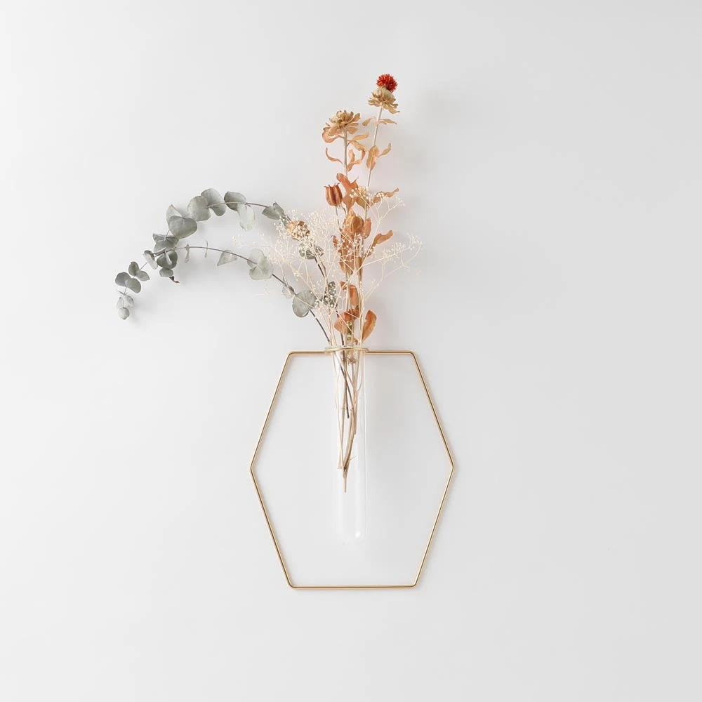 ヘキサゴン型ウォールフラワーベース フック付:洗練された壁面装飾の革新