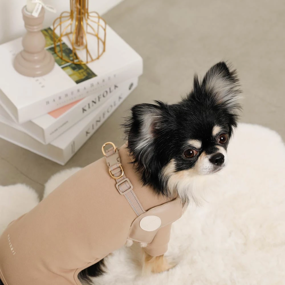 従来のハーネスによくある「擦れ」「ムレ」「締め付け」といった不快感から解放されます。ボア素材のやさしい肌ざわりと、メッシュ部分の通気性が、愛犬に最高の装着感を提供。特に皮膚が敏感な犬種や、長時間の散歩が好きなワンちゃんに最適です。