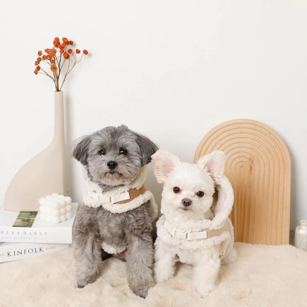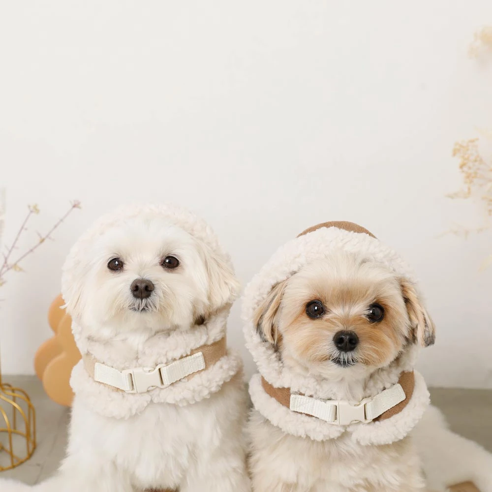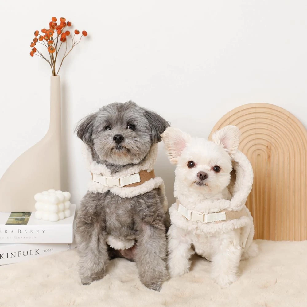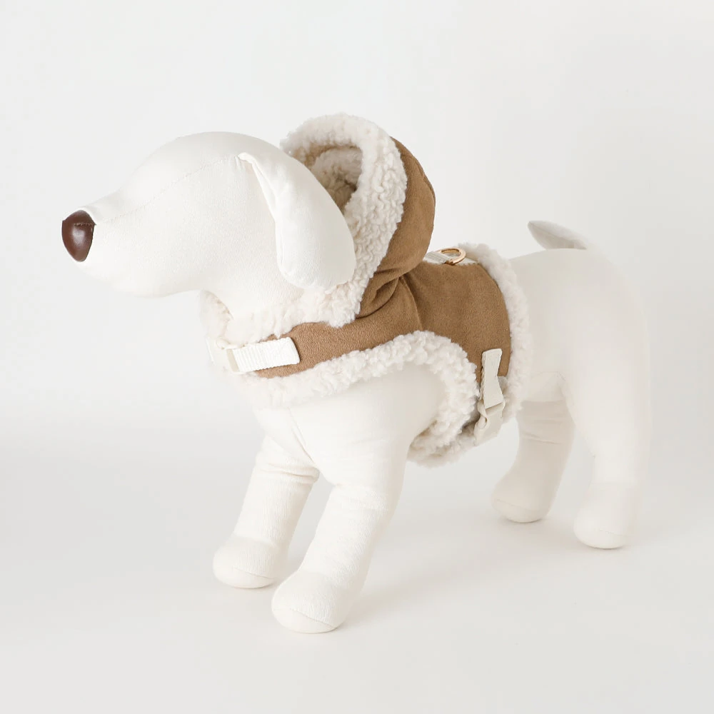 ムートンボアフードハーネス:愛犬の冬の必須アイテム