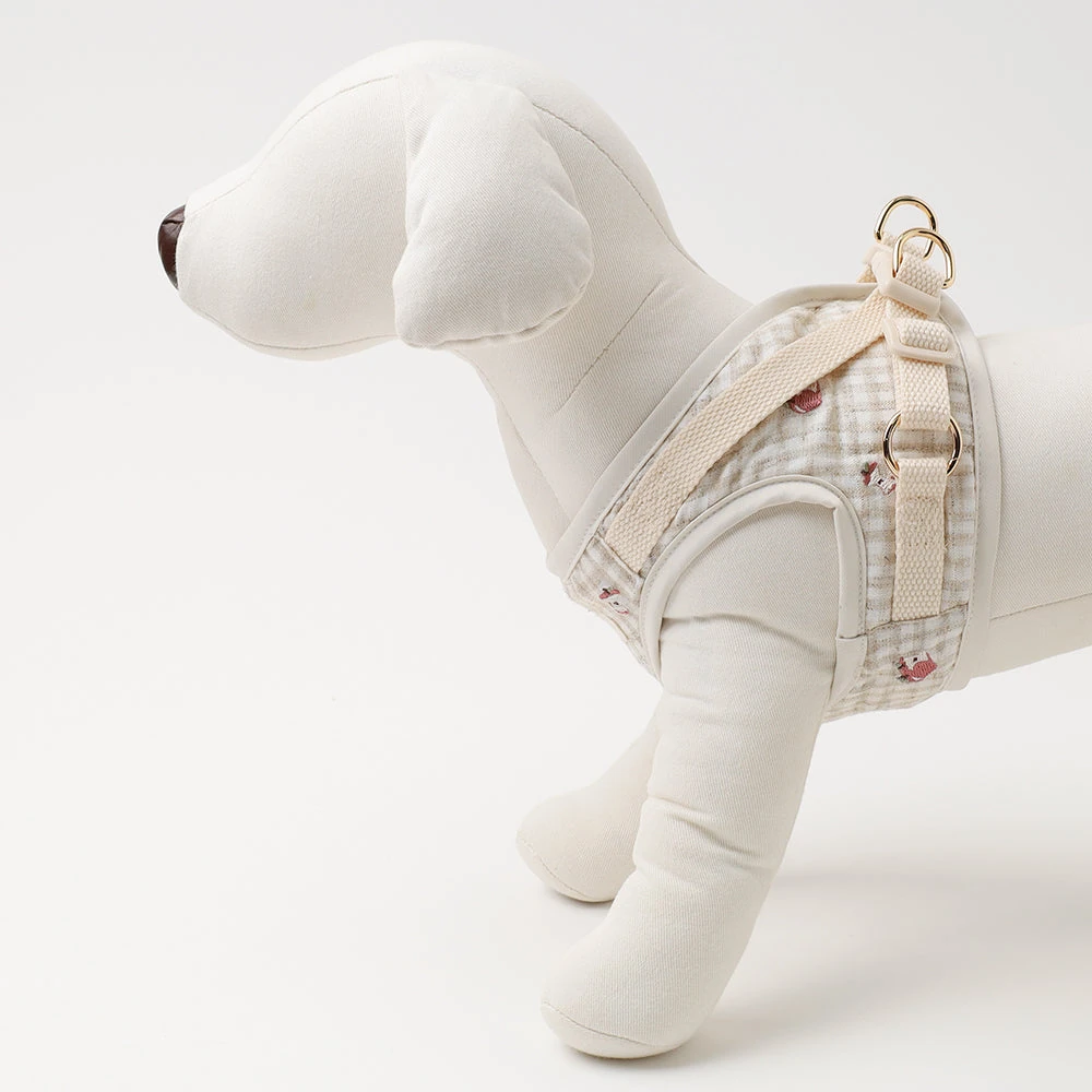 愛犬の個性を輝かせるリンゴ柄刺繍ハーネス+リードSET
