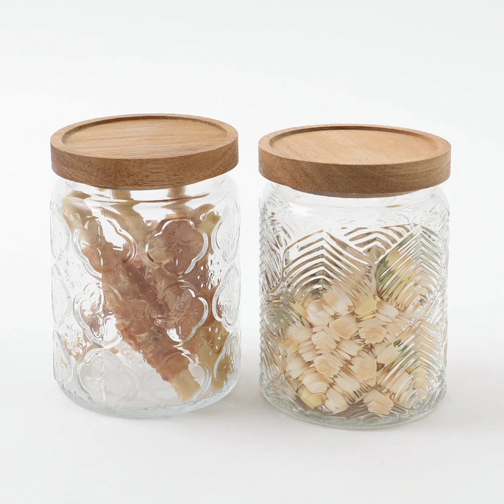 リーフ柄ウッド蓋ガラスキャニスター:美しさと機能性の調和