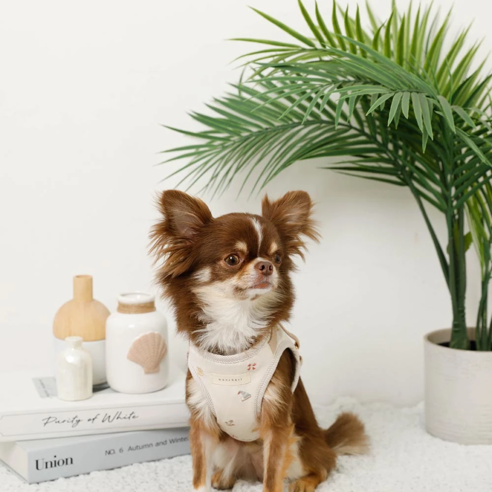 冷感マリン柄刺繍ハーネス+リードSET【名入れ刺繍対応】- 愛犬の夏を快適に彩るプレミアムアイテム