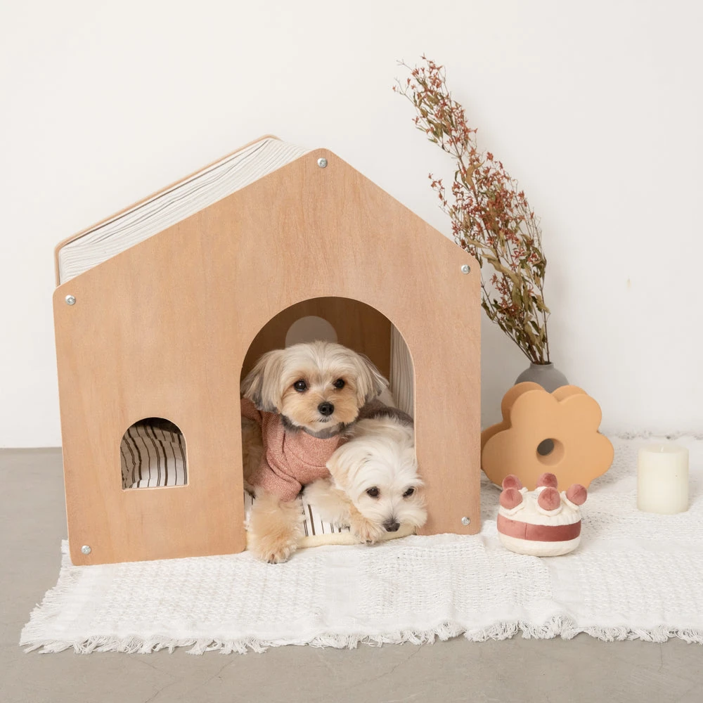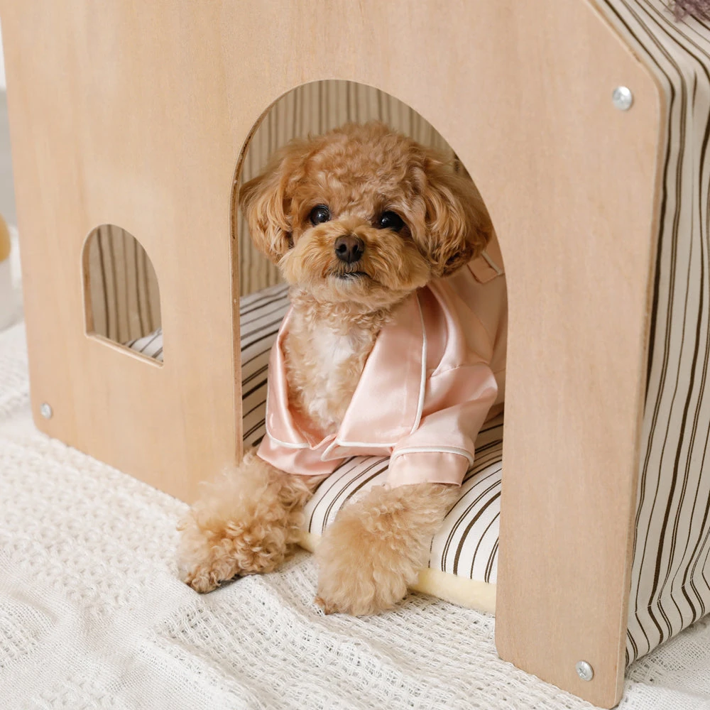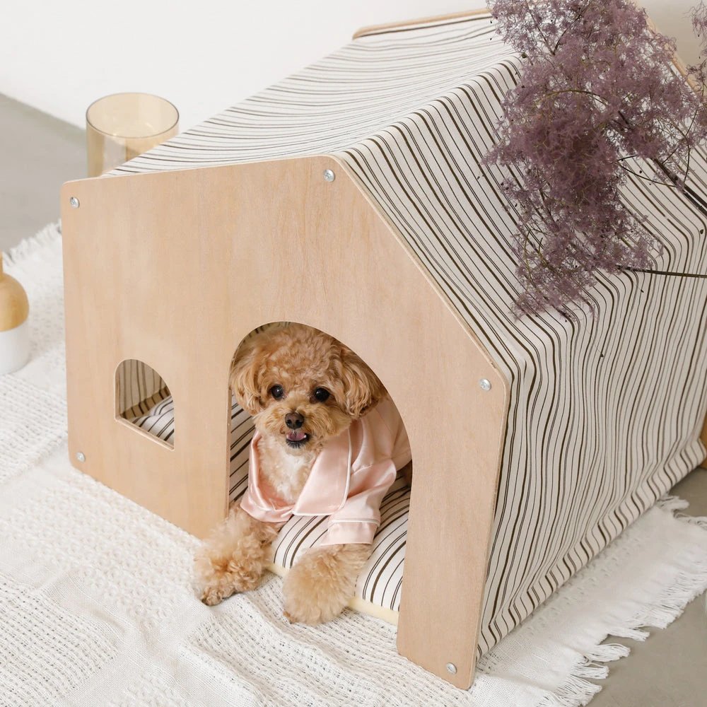 室内用ストライプペットハウス クッション付:愛するペットのための至極の休息空間