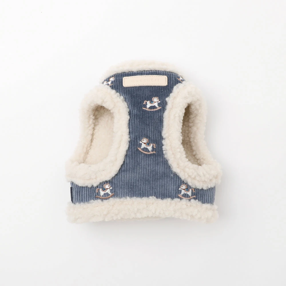愛犬の特別感を最高に引き出す木馬刺繍入りコーデュロイボアハーネス+リードSET