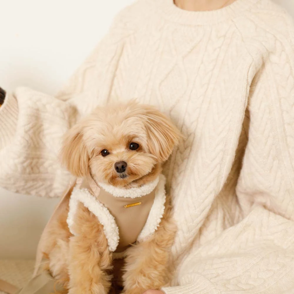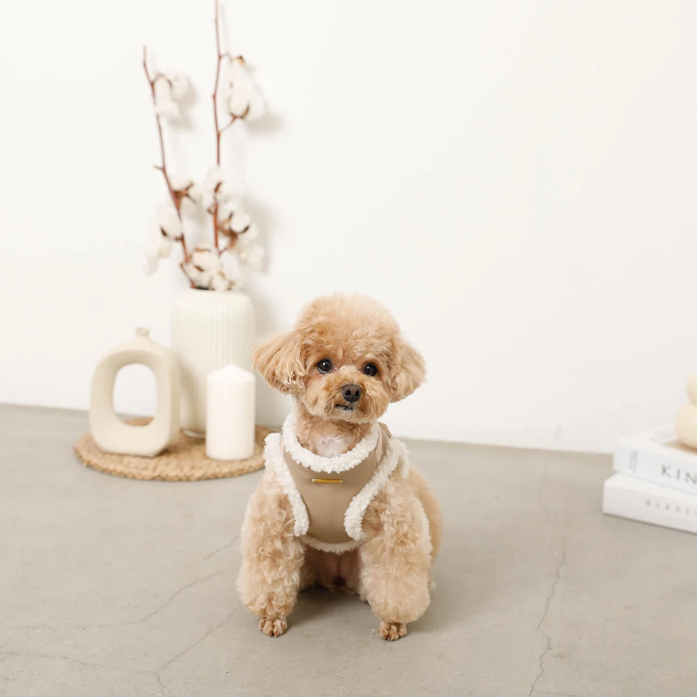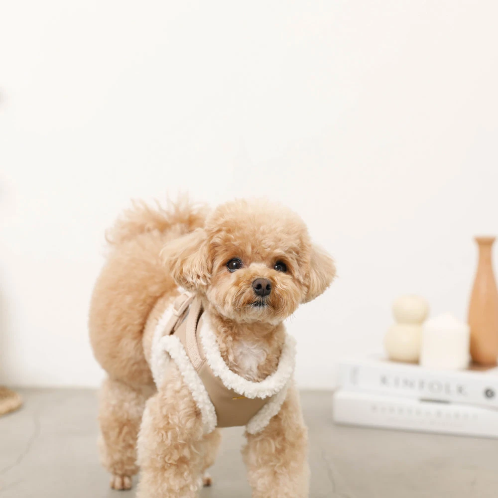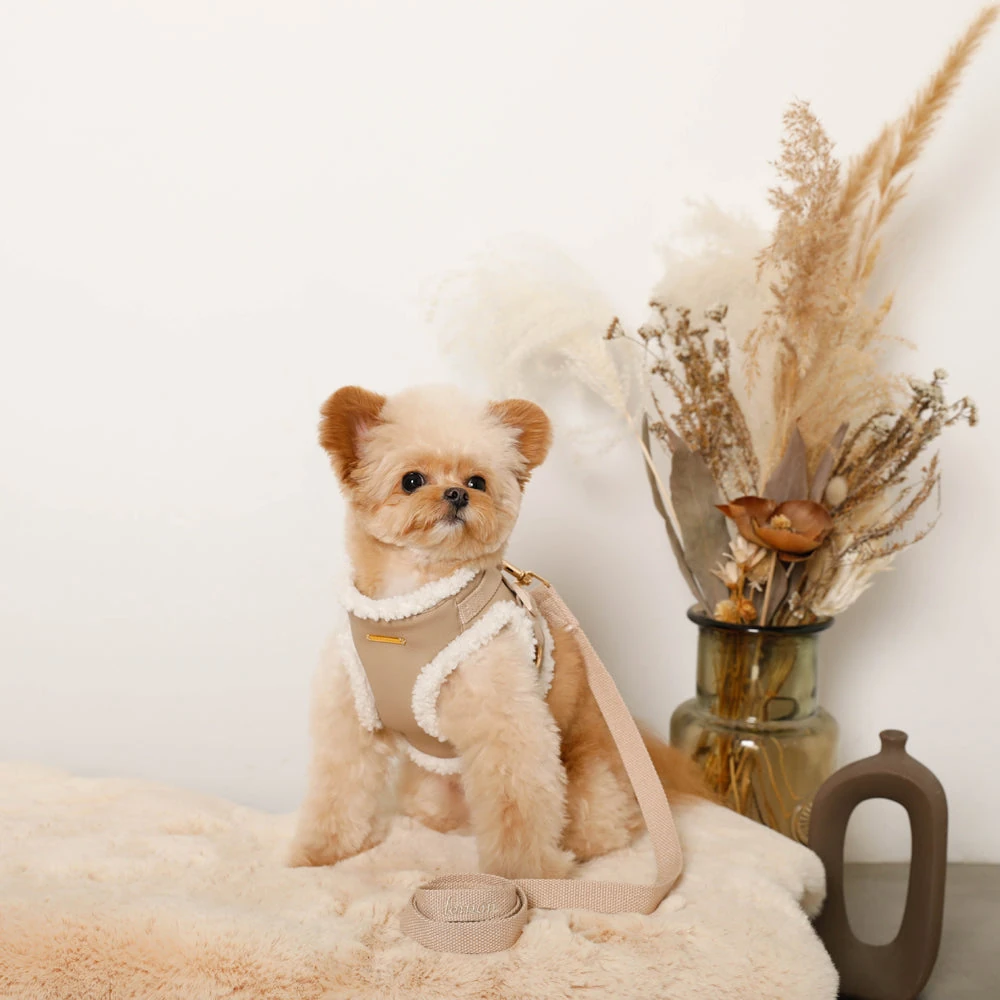 エコレザーボアMIXハーネス+リードSET【名入れ刺繍対応】〜愛犬のための特別な装い〜